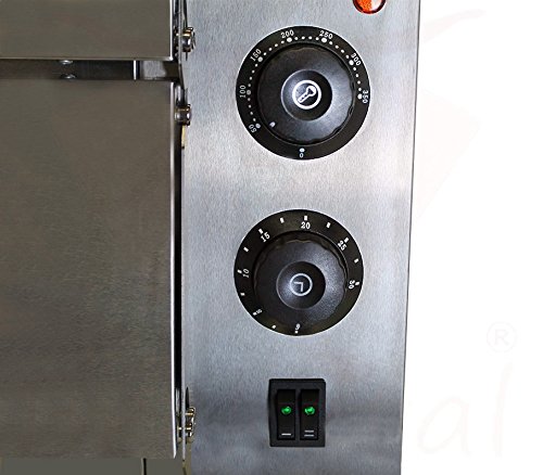 Funktionsweise: Ist der Dauerstrom Schalter eingeschaltet, heizt der Pizzaofen auf die mit dem Drehknopf-Thermostat eingestellte Temperatur hoch und hält diese konstant. Ist der Dauerstrom Schalter ausgeschaltet so kann der Ofen mittels Zeitschaltuhr auf die eingestellte Dauer aufgeheizt werden. Ist die eingestellte Zeit abgelaufen, schaltet sich der Ofen automatisch wieder ab.